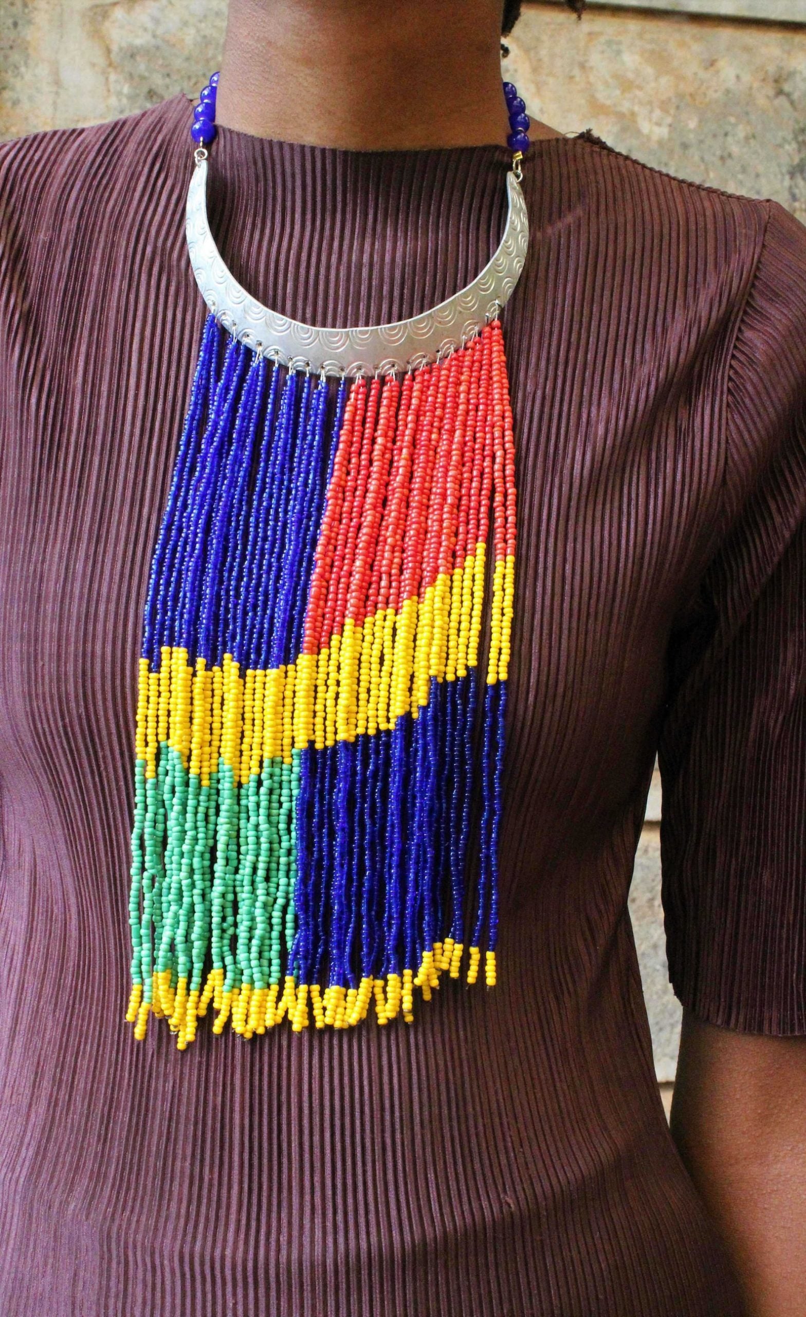The final touch of opulence is bestowed upon this exceptional creation with the inclusion of a brass clasp, ensuring both durability and a seamless closure. Elevate your style with this extraordinary accessory, a testament to the artistry and skill of our talented artisans in Nairobi, Kenya