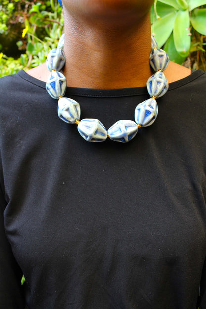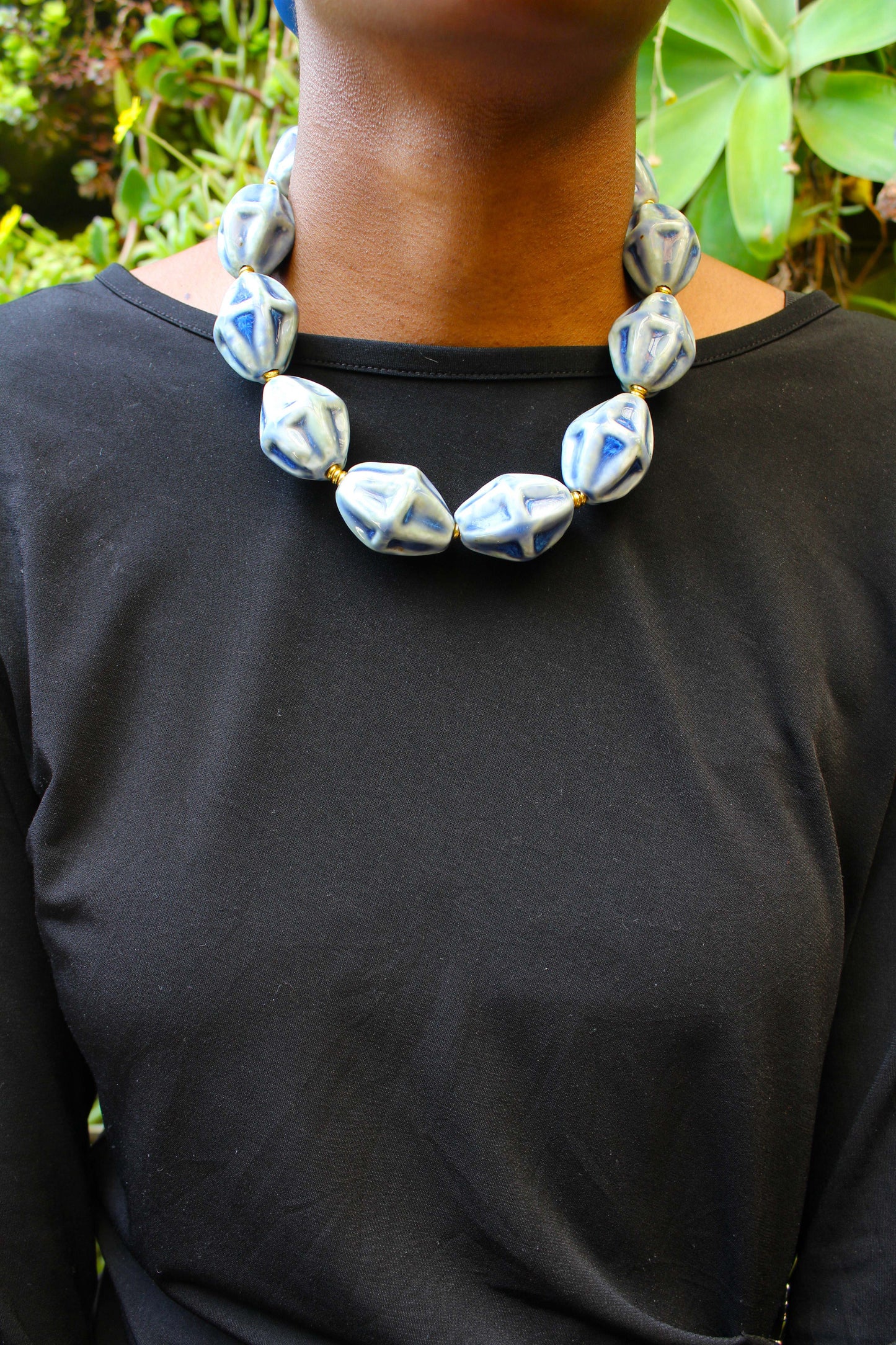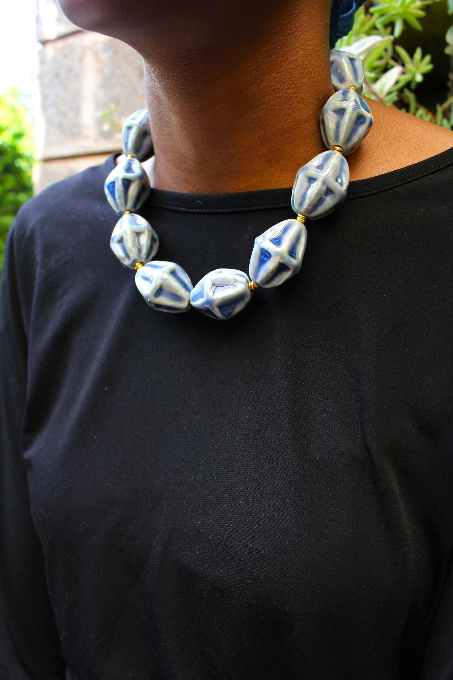 This Beautiful necklace is crafted with ceramic beads and brass. Finished with a quality brass clasp and extender chain.