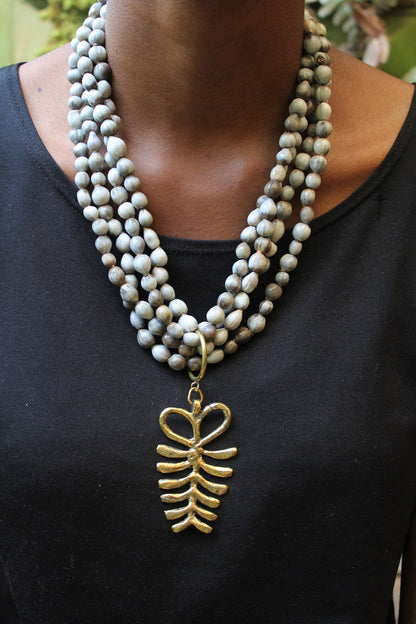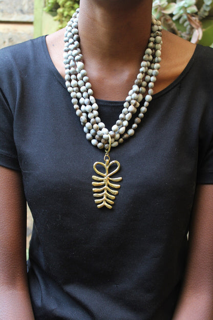 Experience the beautiful artistry of Africa with this handmade necklace from Nairobi, Kenya! Crafted with exquisite brass pendant and shell beads, this statement piece features a brass hook clasp and comes with a convenient extender choice. Enjoy superior comfort with this luxury necklace that you can wear frequently—33 centimeters long.