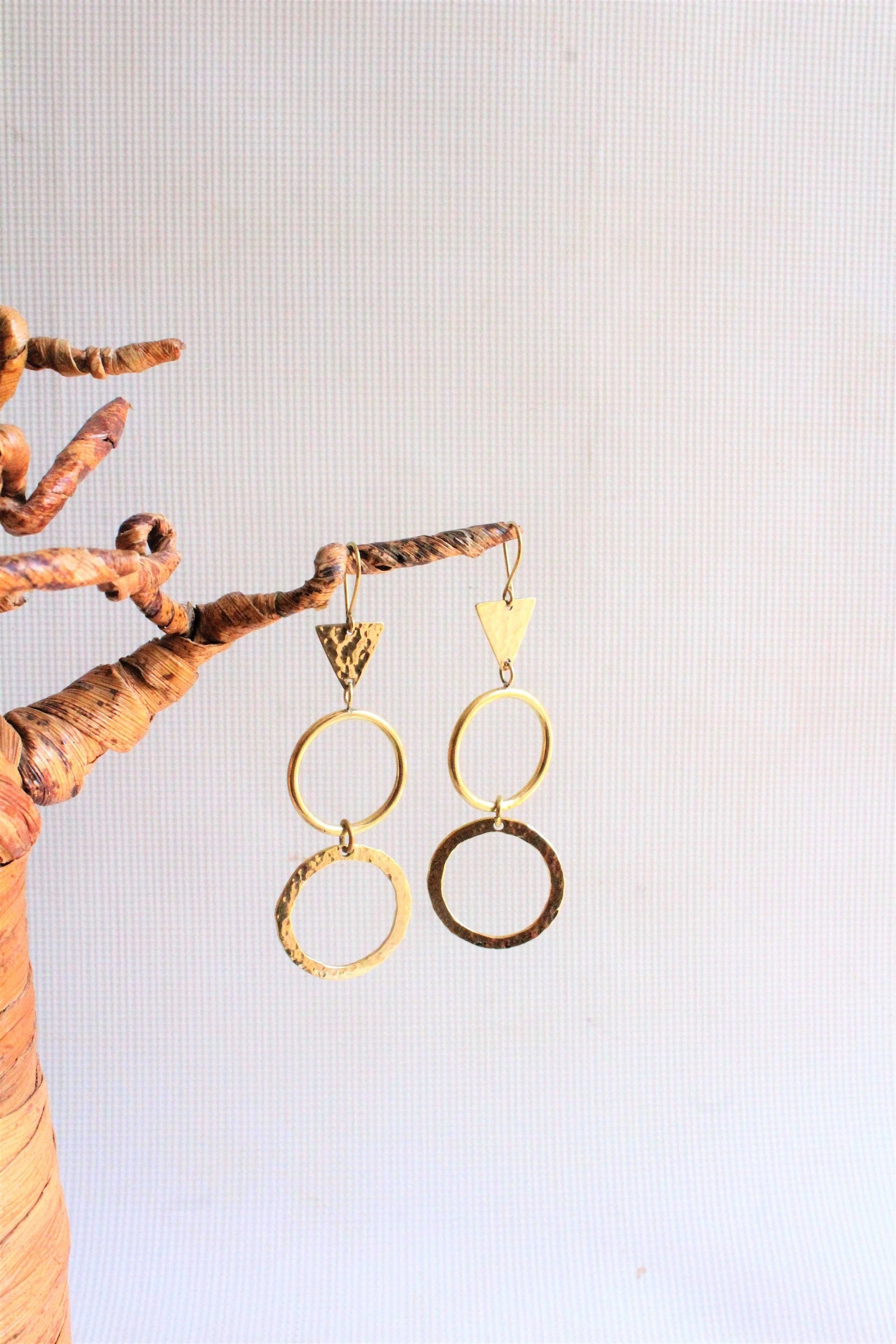 Handcrafted with love in Nairobi, Kenya, these classic brass earrings are finished with luxurious brass hooks. Measuring 8.8 centimeters in length and 2.9 centimeters in width, they are the perfect addition to any outfit.