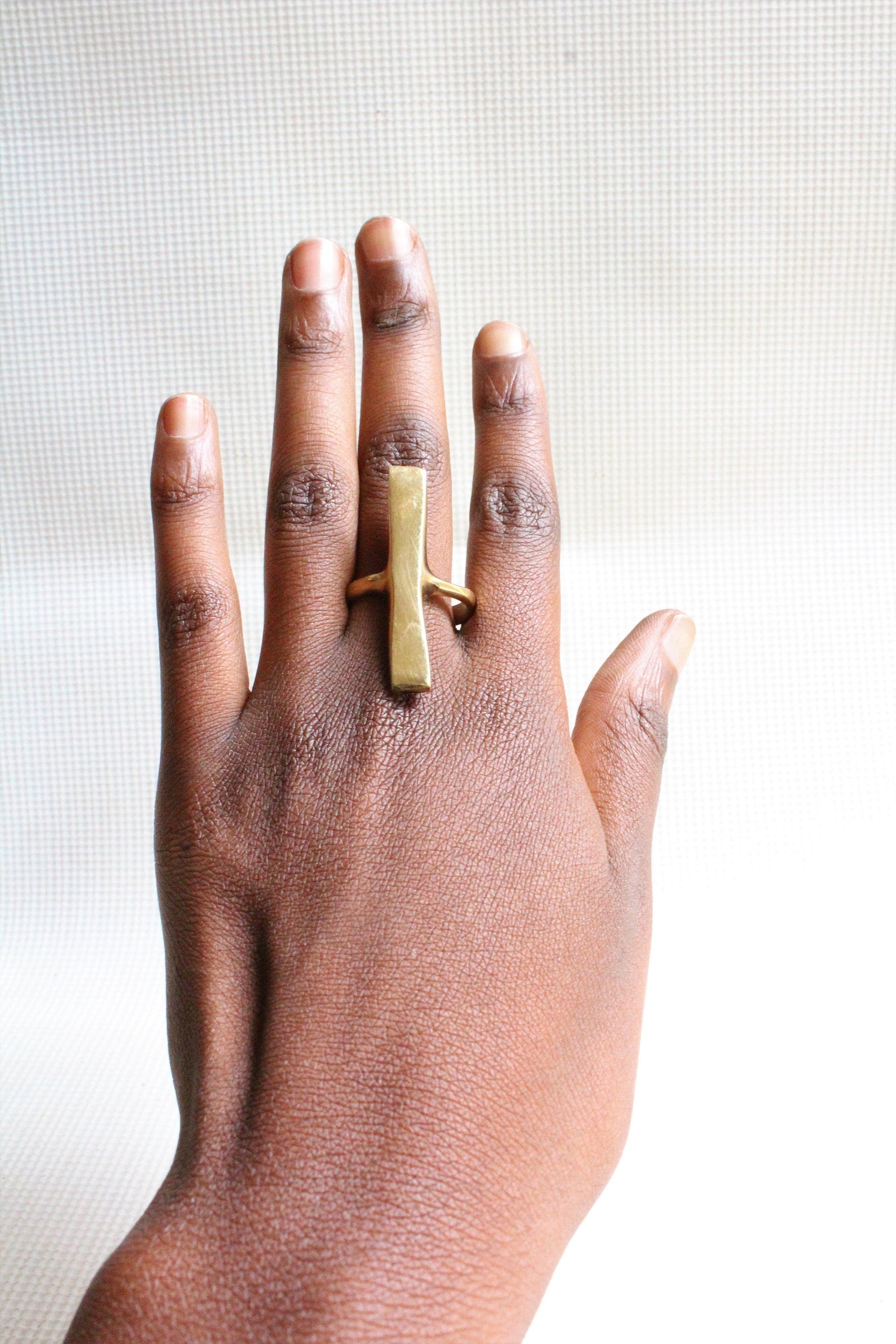 Hand-made in Nairobi, Kenya, this unique bling is crafted with brass and comes in two sizes to fit any finger.