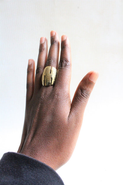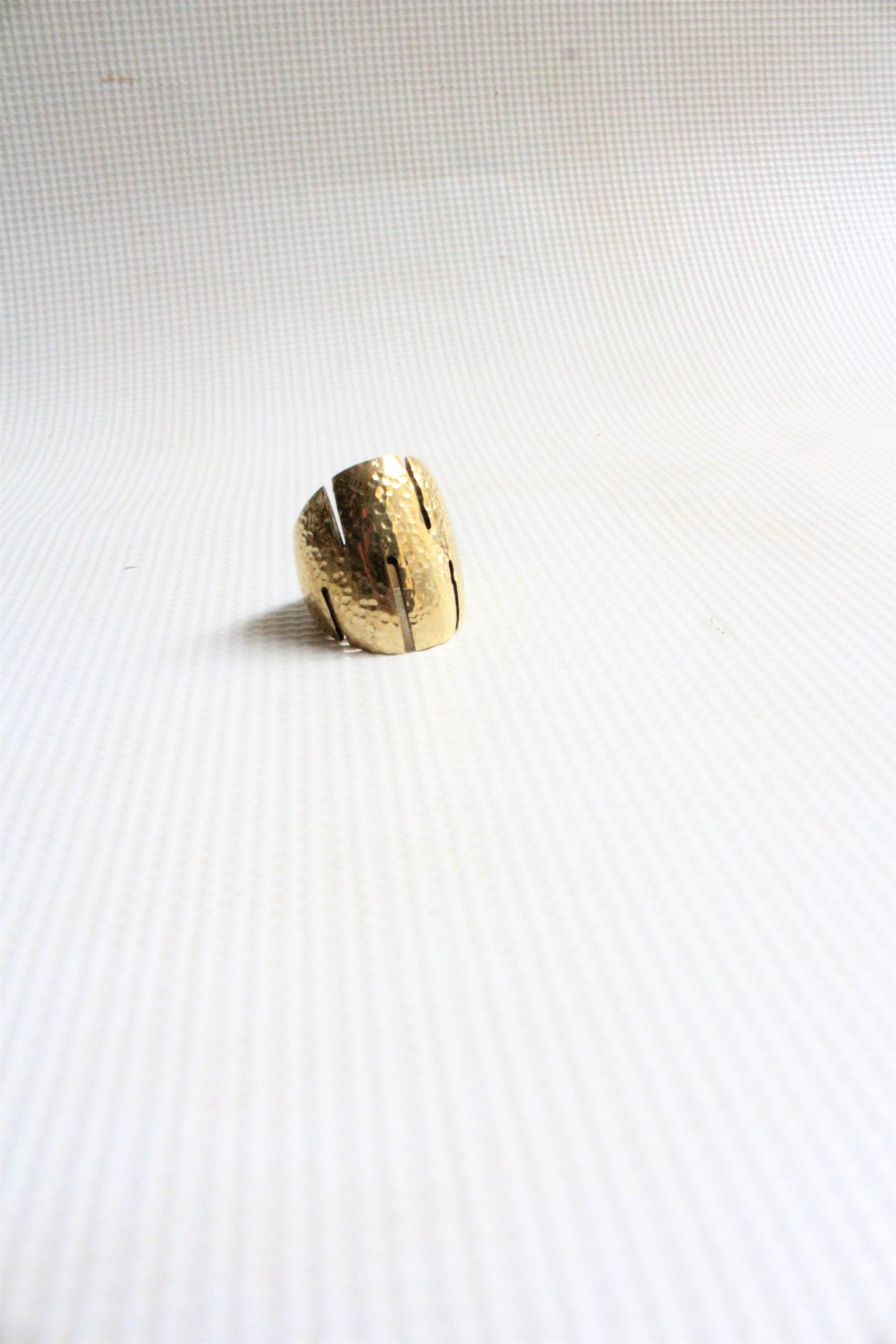 Constructed from pure brass, this remarkable ring features intricate slits and is available in size 7US.