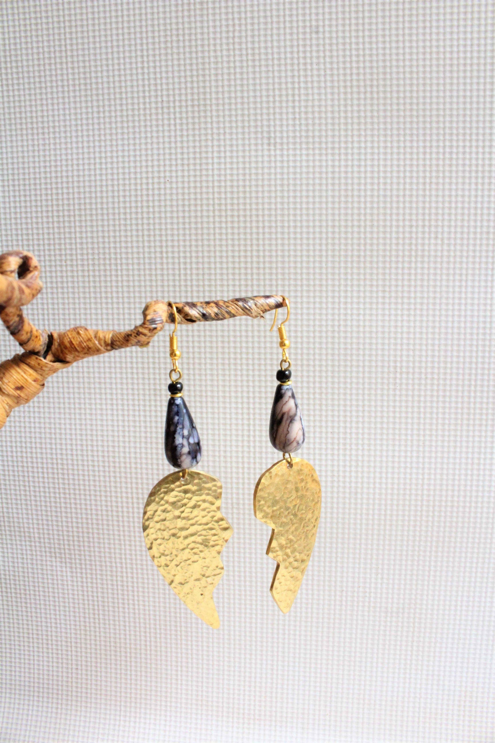 Fashioned with skill and care in Nairobi, Kenya, these alluring earrings bring class and classiness to any ensemble. An uncommon and delightful addition to any jewelry collection, the brass and teardrop shaped bead composition make for a breathtaking accessory. Size: 8.5 Centimeters in length, 2.5 Centimeters in width.