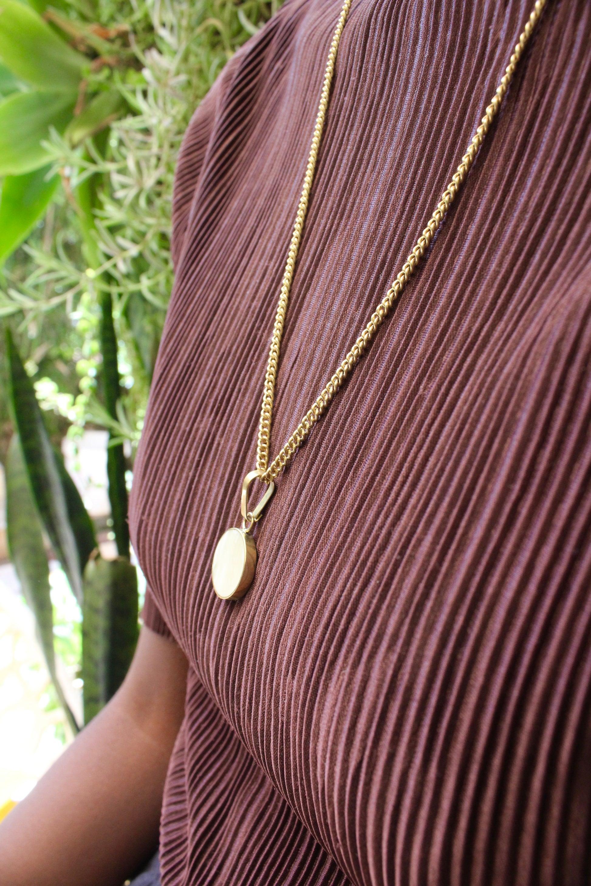 The Joki Necklace is a refined statement piece that celebrates timeless elegance. Crafted with meticulous attention to detail, this 30cm necklace features a striking handmade horn pendant encased in lustrous brass, suspended from a delicate brass chain and finished with a secure brass clasp. The harmonious blend of organic horn and polished brass creates an understated sophistication that elevates any ensemble. A truly exceptional accessory for those who appreciate artisanal craftsmanship and enduring style.