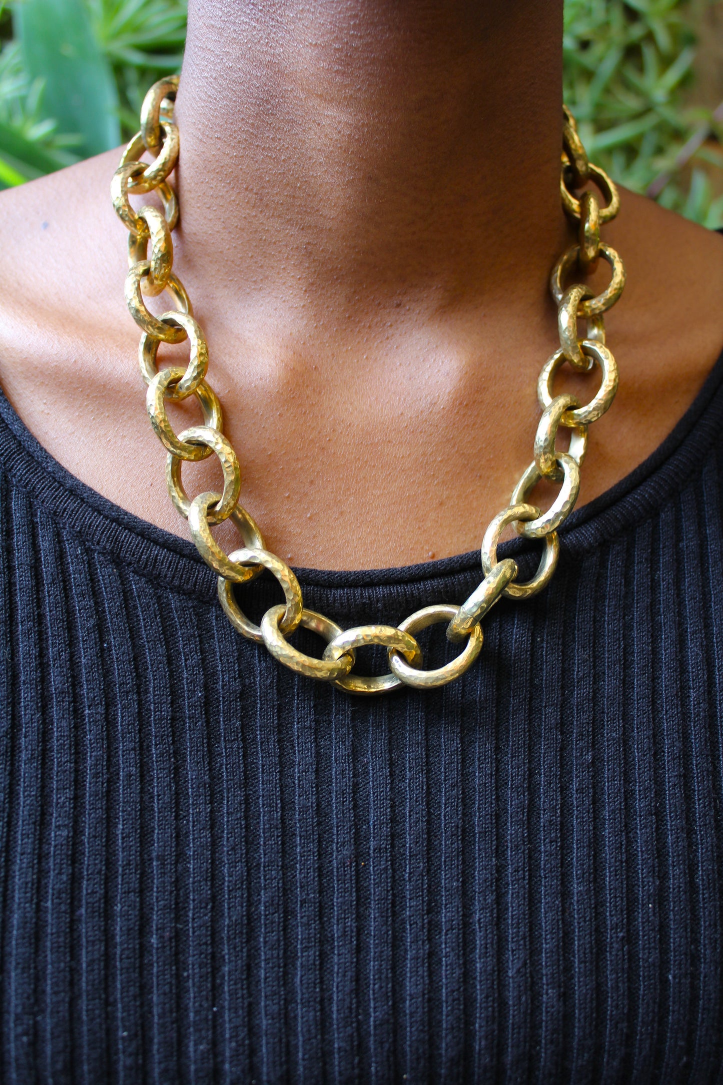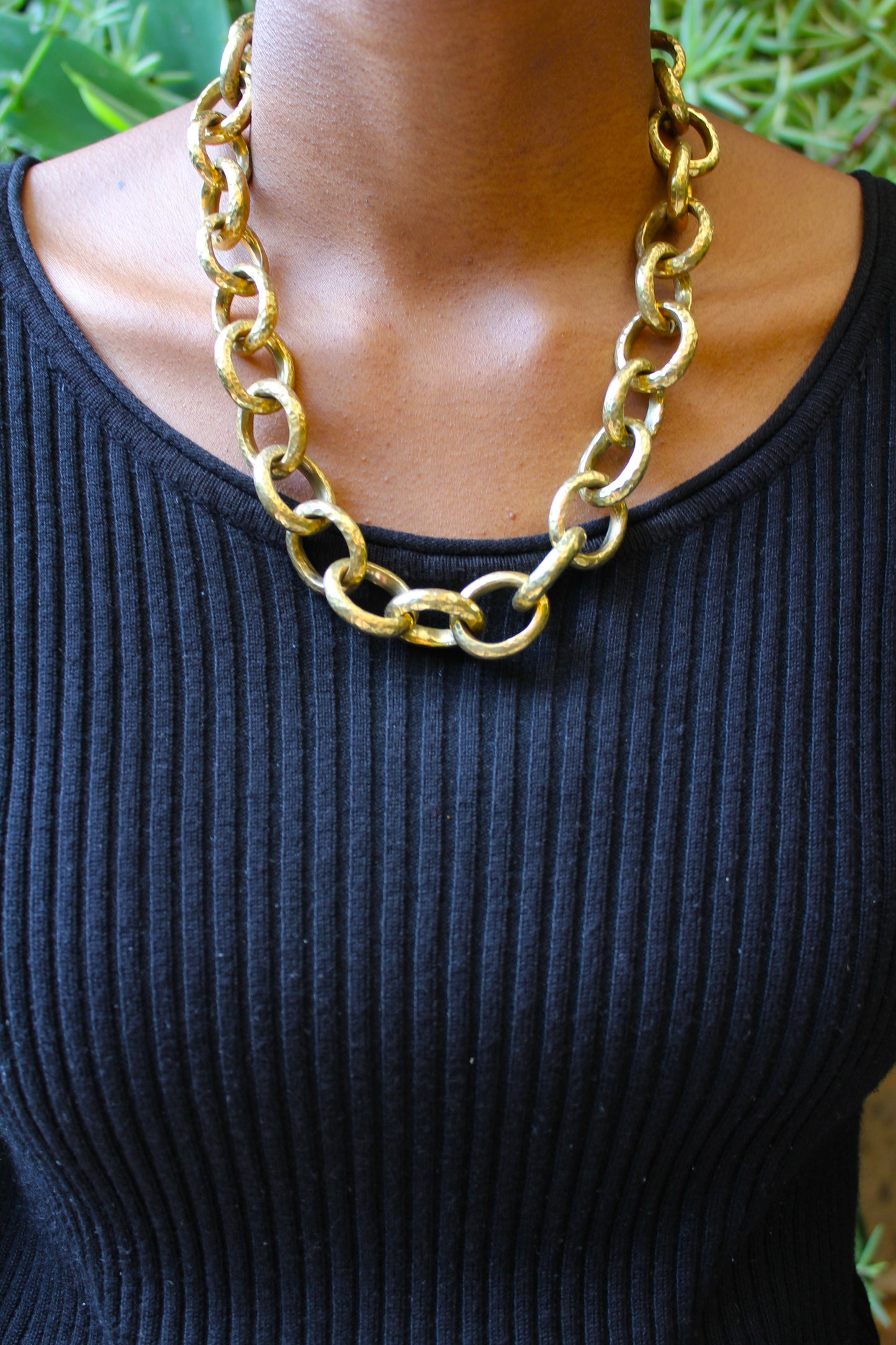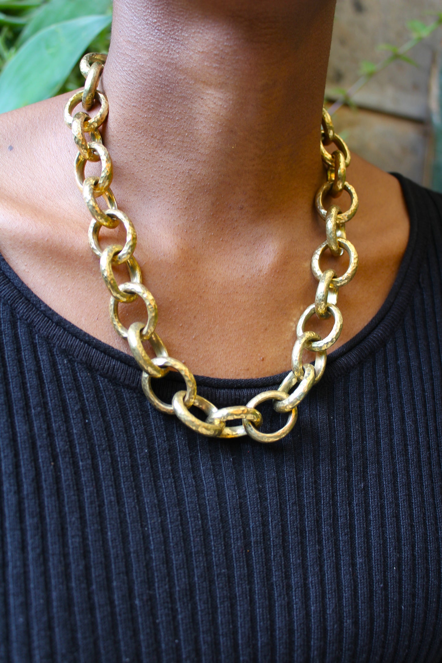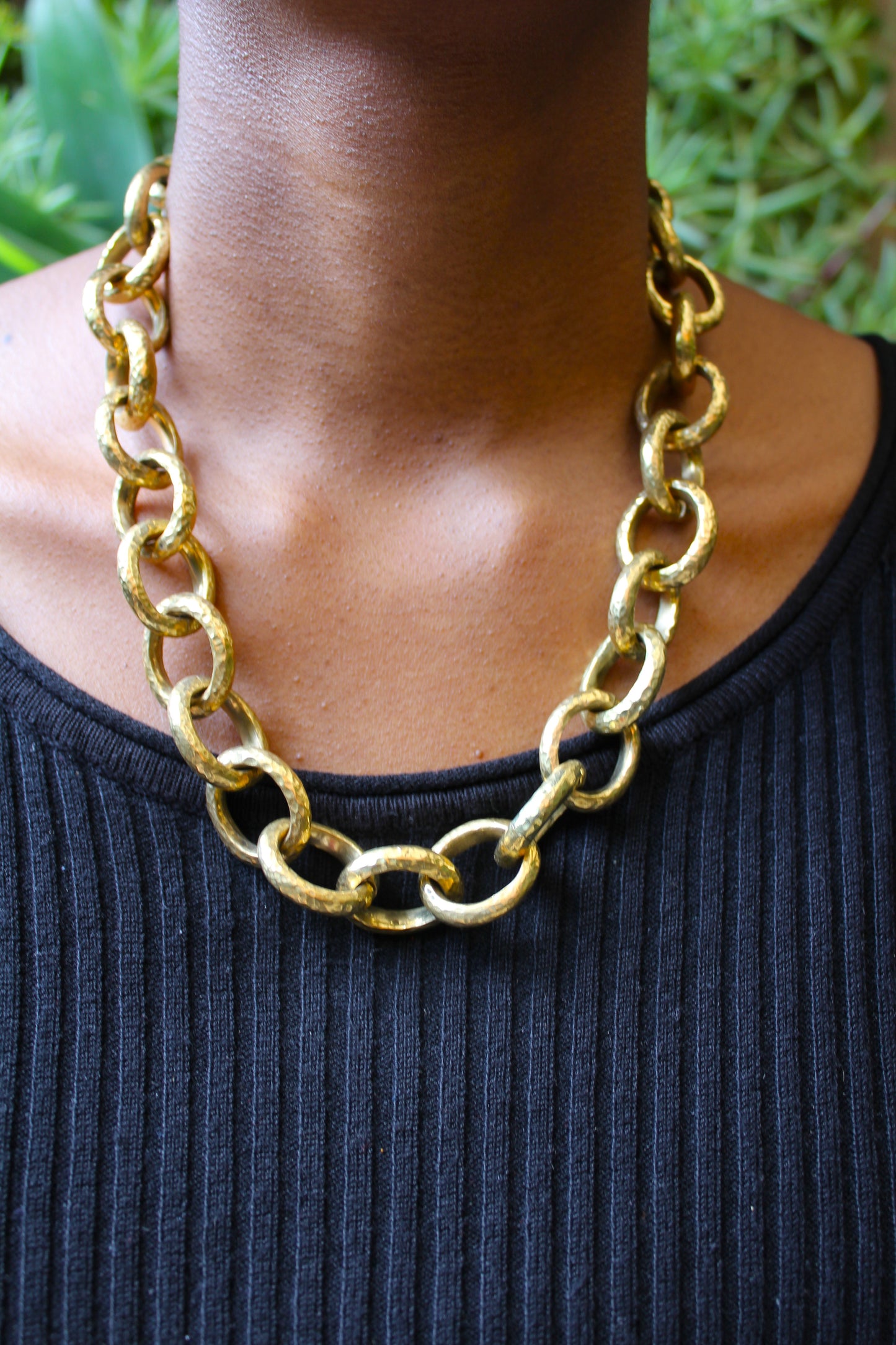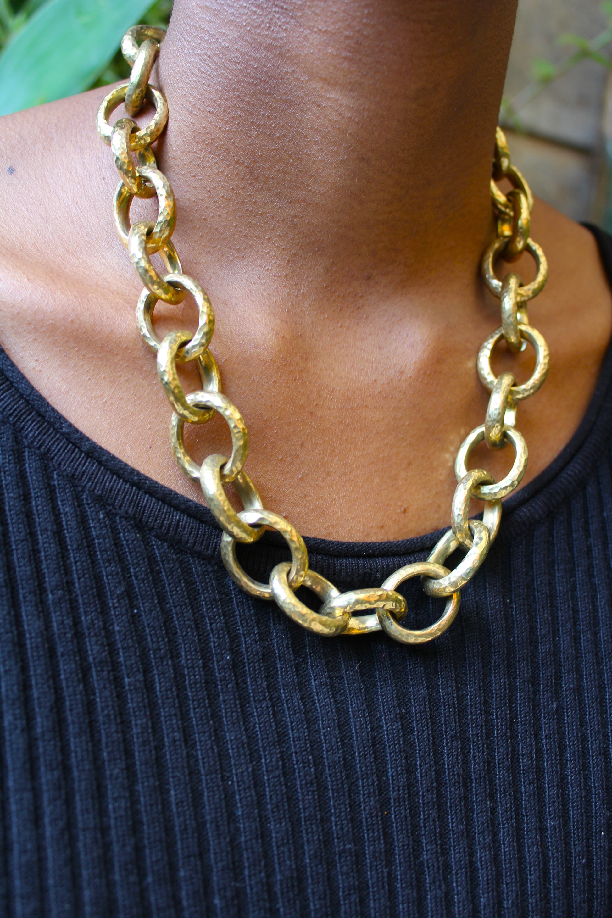 Crafted with brass links and finished with a brass hook clasp.