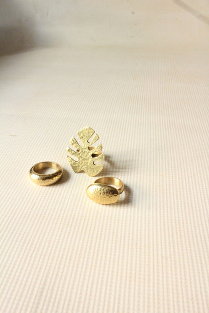 Experience the beauty of Kenya with this set of 3 handmade brass rings. Each piece is uniquely crafted, making them a one-of-a-kind addition to your collection. Indulge in the artistry and quality of Kilifi Ring Set.