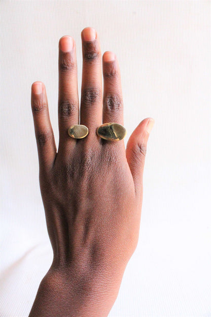 Indulge in the artisanal beauty of Nairobi, Kenya with this handcrafted Kina Ring. Made from durable brass, this adjustable ring is a unique and captivating addition to any jewelry collection.