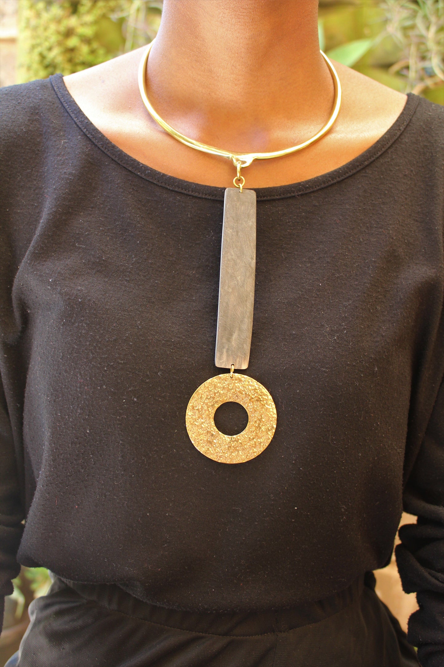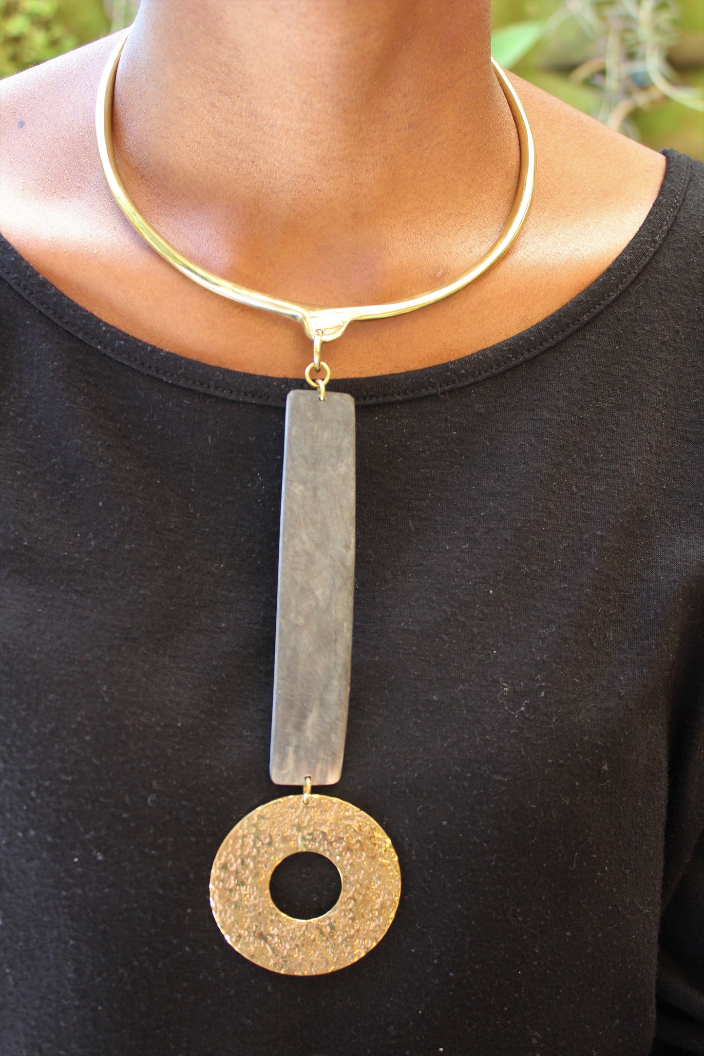 Crafted with horn curved pendant, brass pendant and finished with a brass clasp. Lightweight to wear.