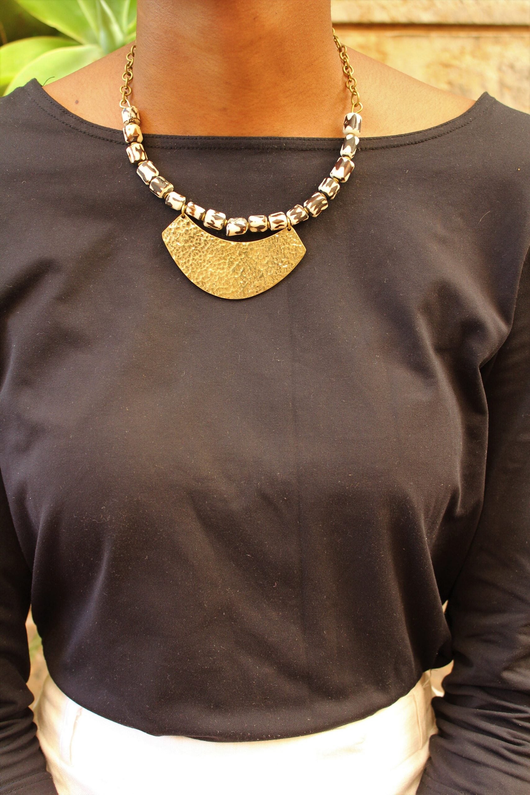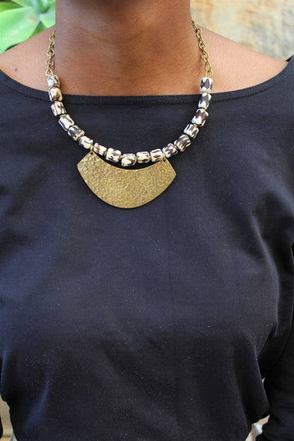 Crafted with a tribal beads and brass pendants. Finished with a brass clasp.