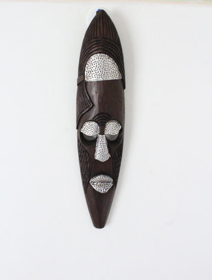 It comes with a leather strand that can be used to hook it to your wall. It is an authentic African mask.