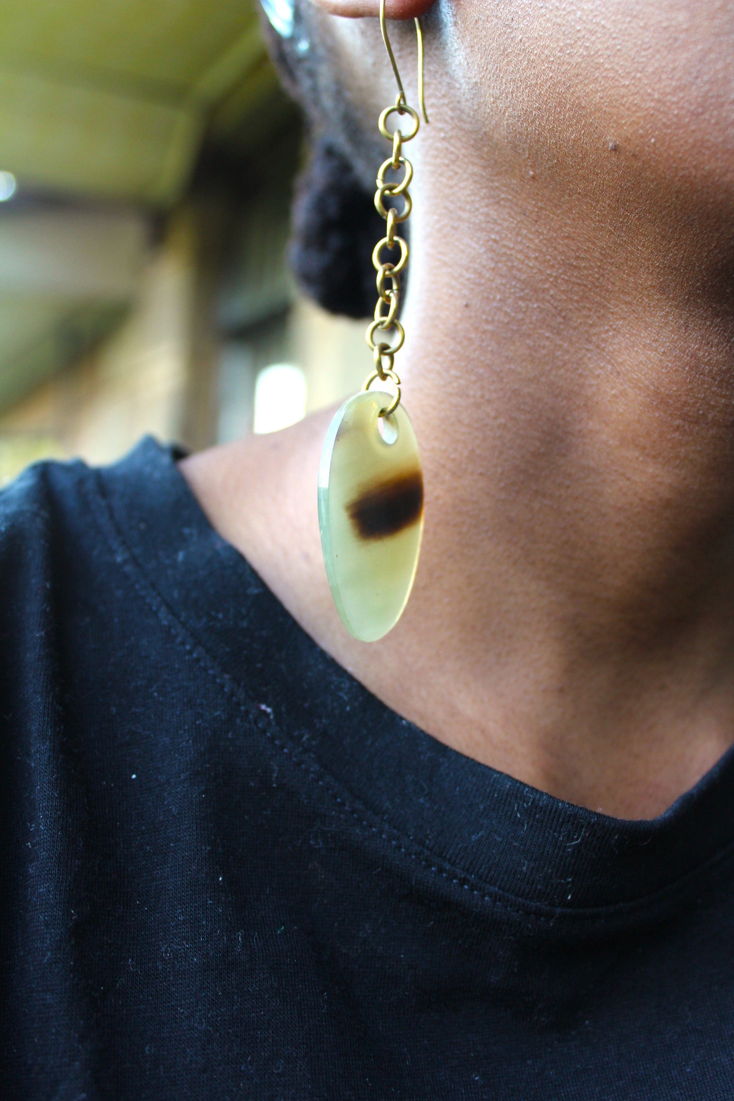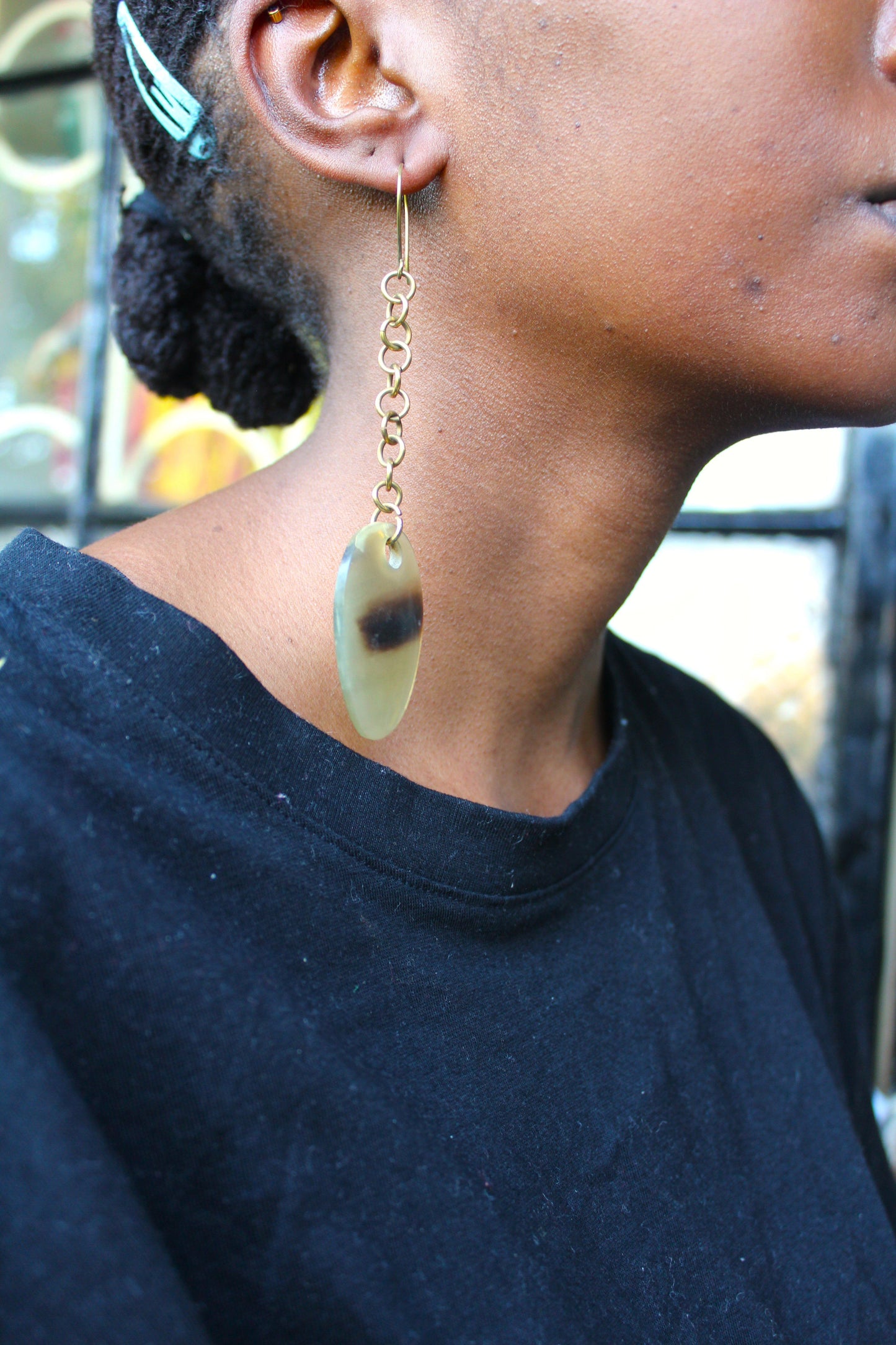Expertly crafted with a brass chain and horn pendants, the Sani Earrings offer a touch of sophistication and elegance to any outfit. The use of high-quality materials ensures durability and timeless style. Elevate your jewelry collection with these unique and versatile earrings.
