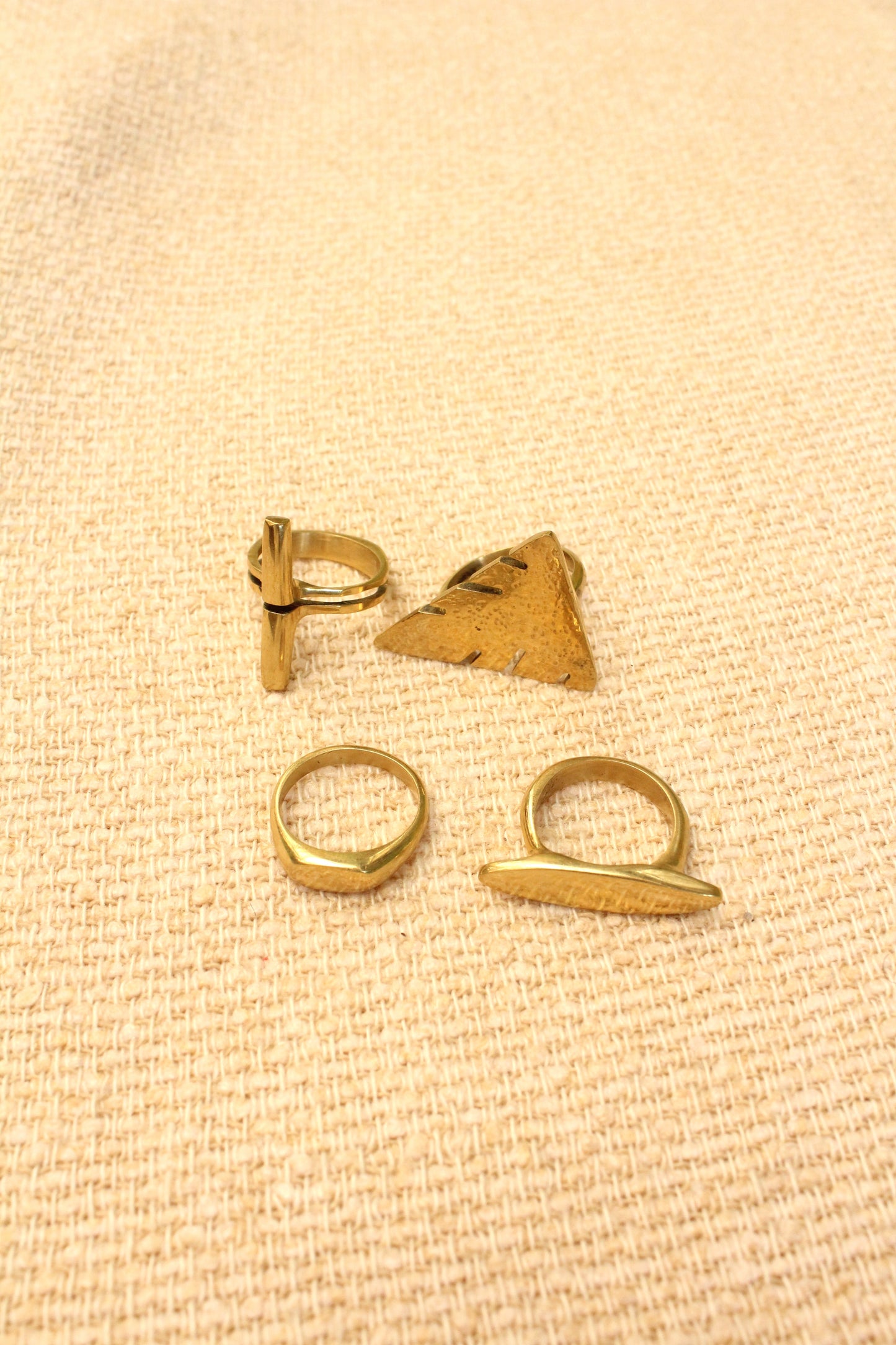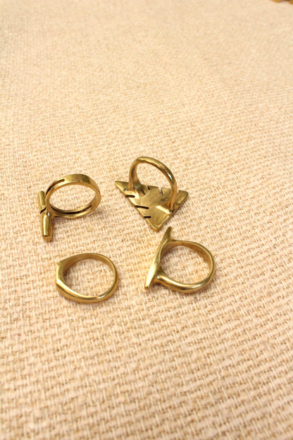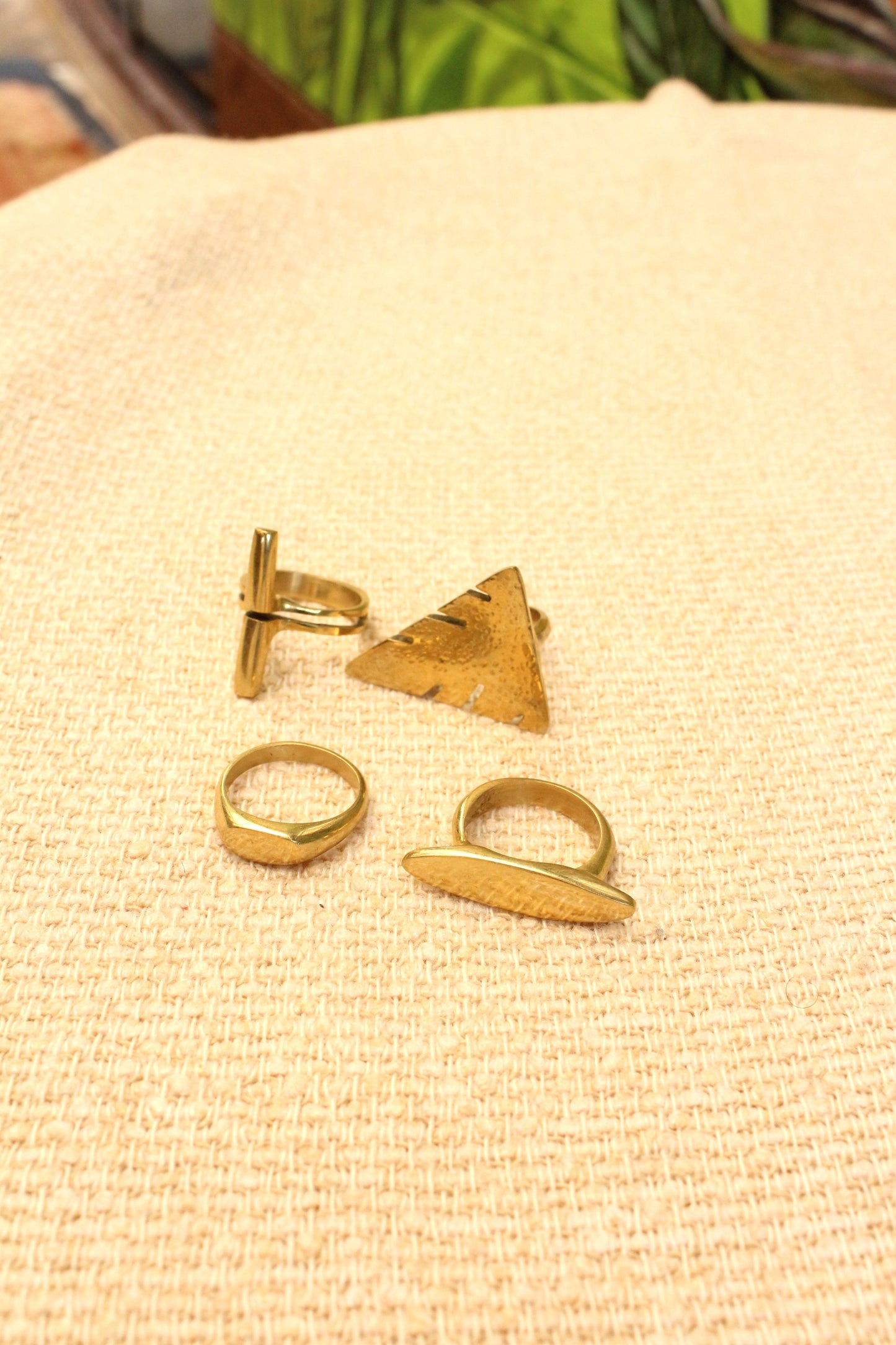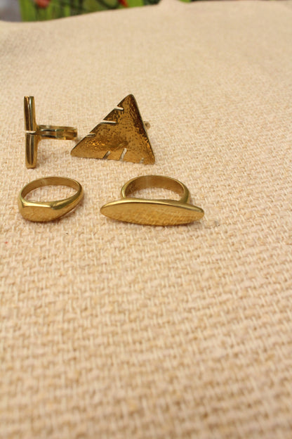 This playful set includes four rings: one triangle ring with a trendy hammered finish and three smooth-finish rings. Sized at 8 3/4, these stackable pieces let you mix textures for a fun, stylish look that’s perfect for adding a quirky twist to any outfit.