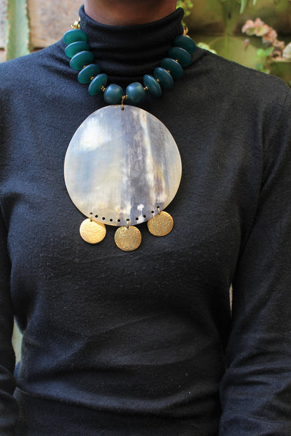 KAY Beautiful necklace. Like the large pendant. Dramatic. Will enjoy. Recommend seller.