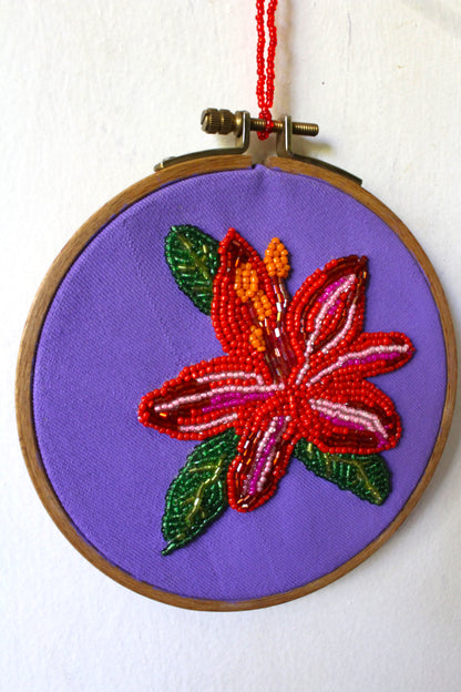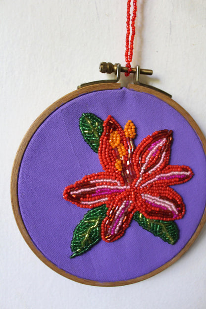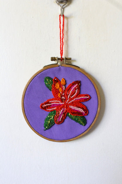This beaded wall hanging is crafted with beads and paint. It is an original art piece, handbeaded and handpainted.