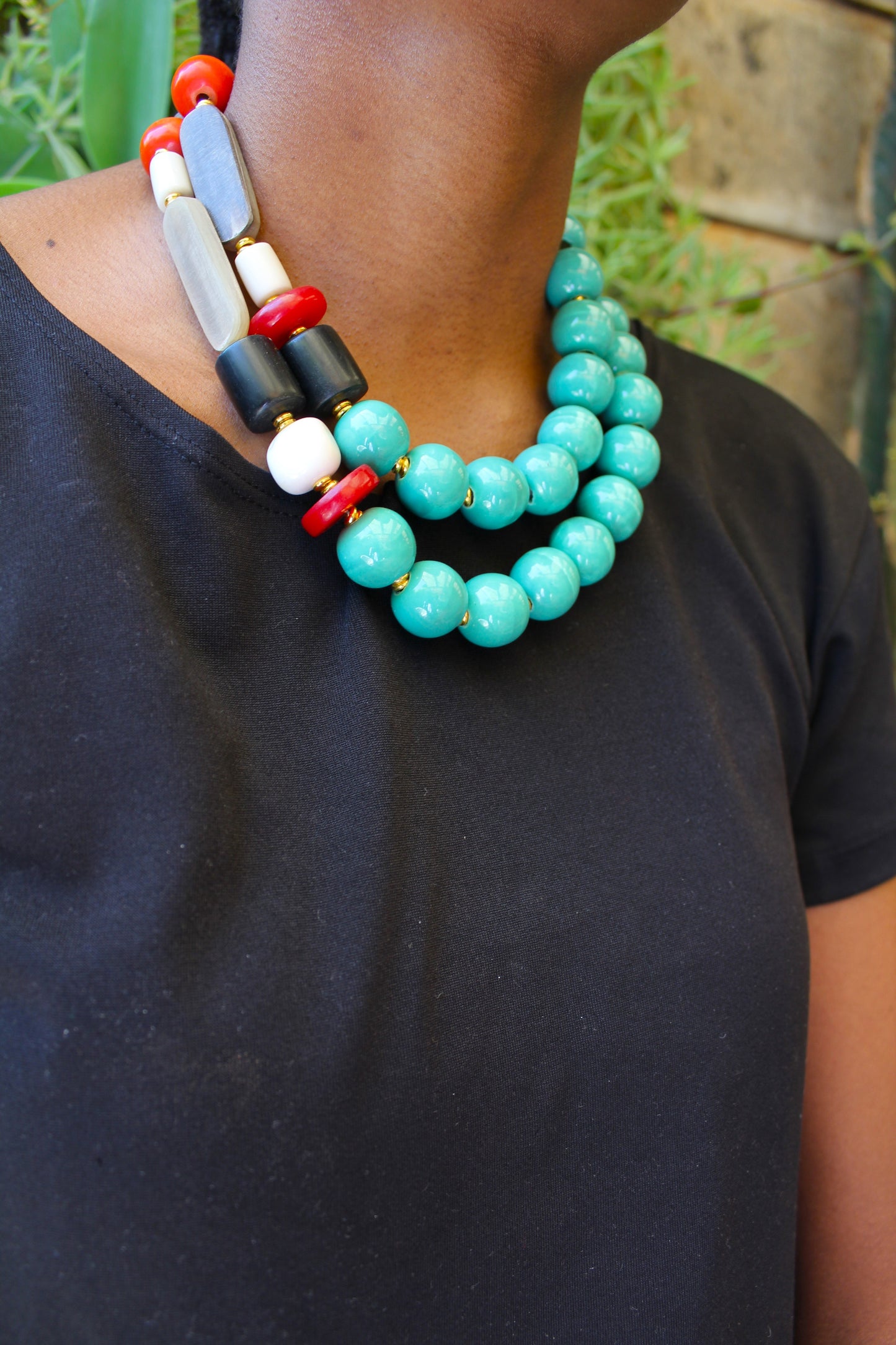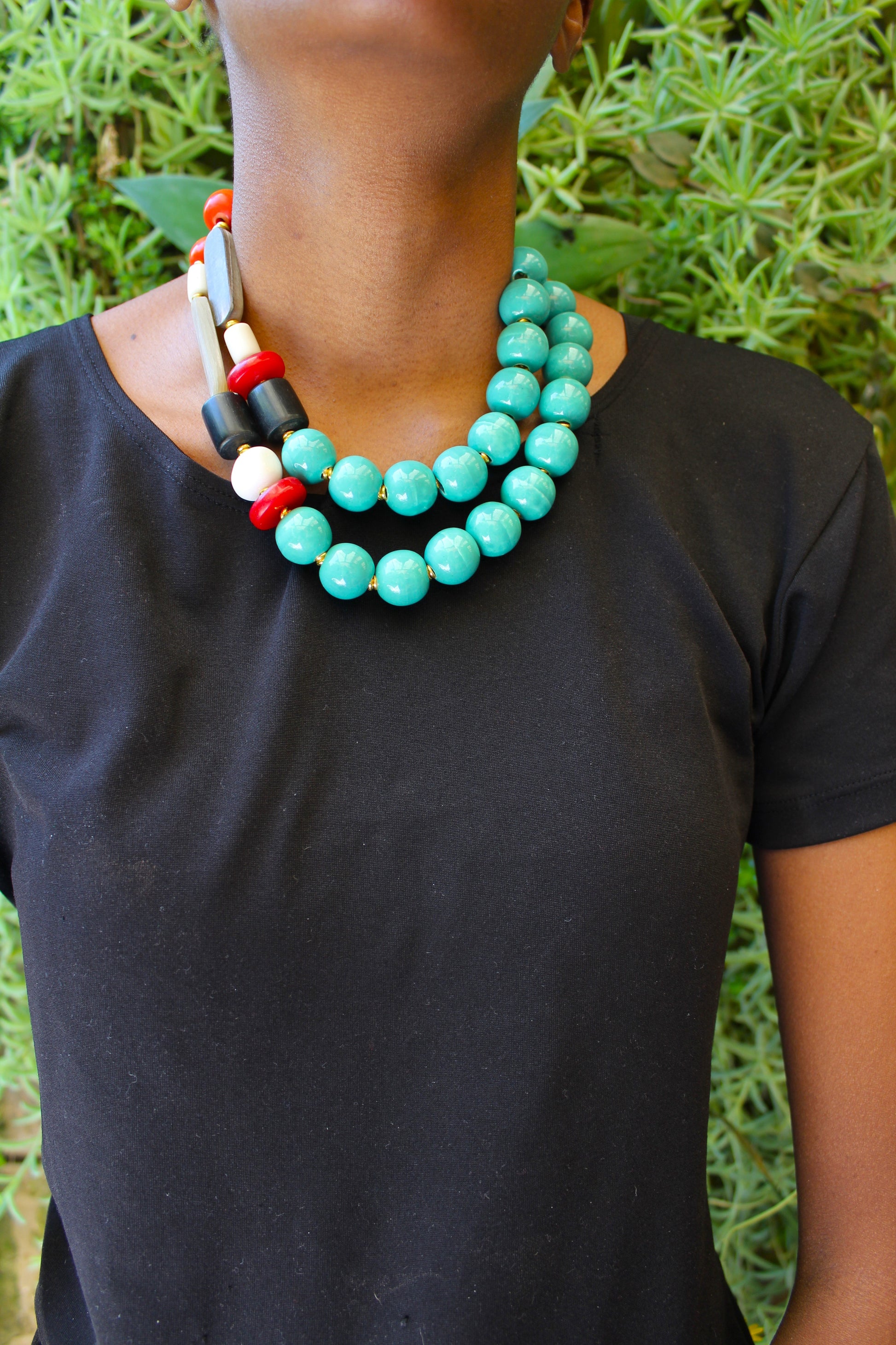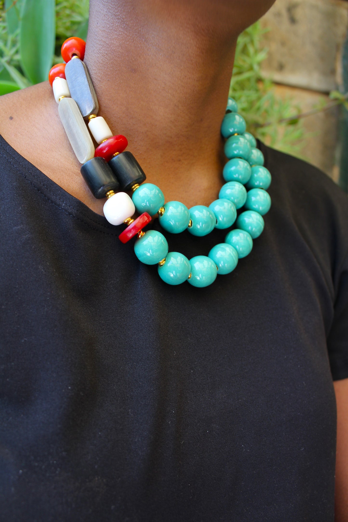 Crafted with a mix of horn beads, round beads, brass spacers and brass chain.