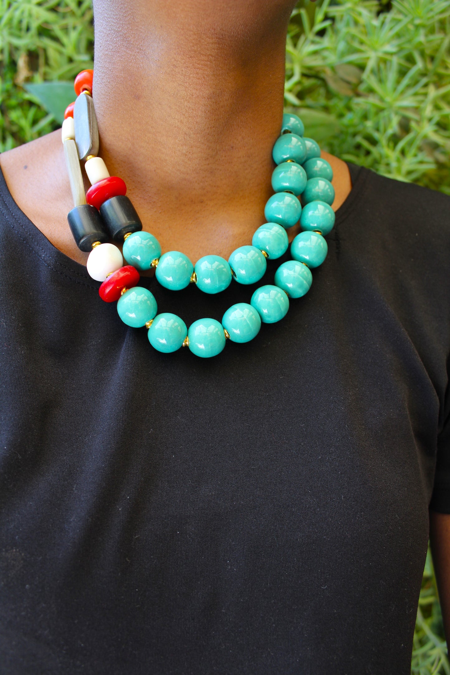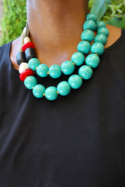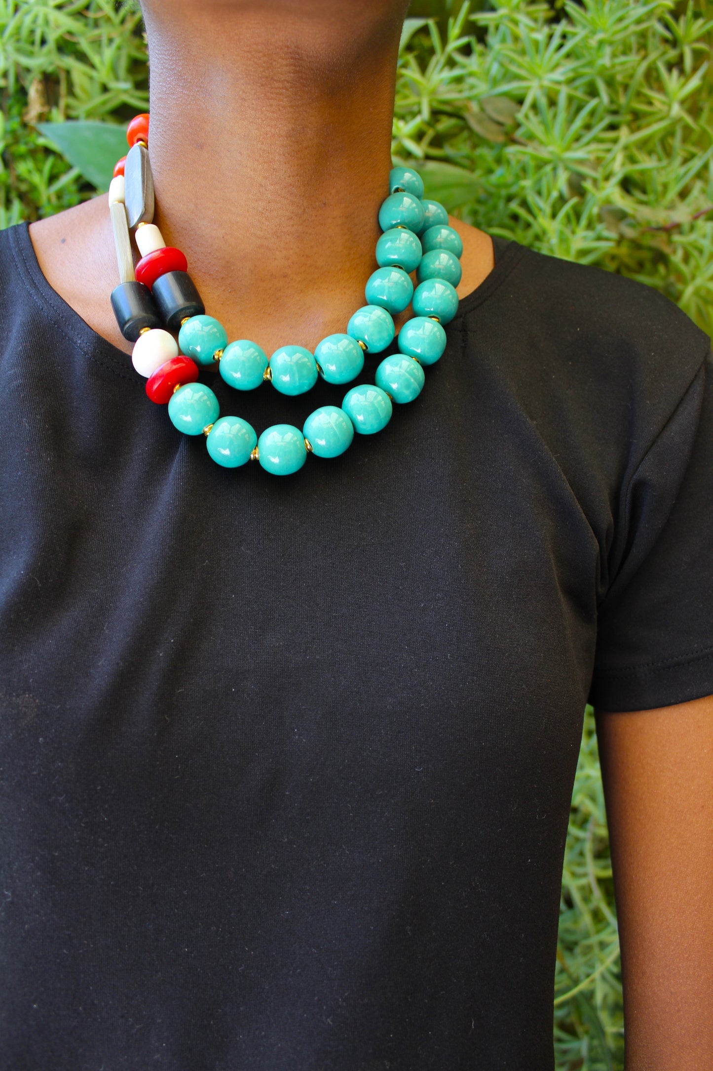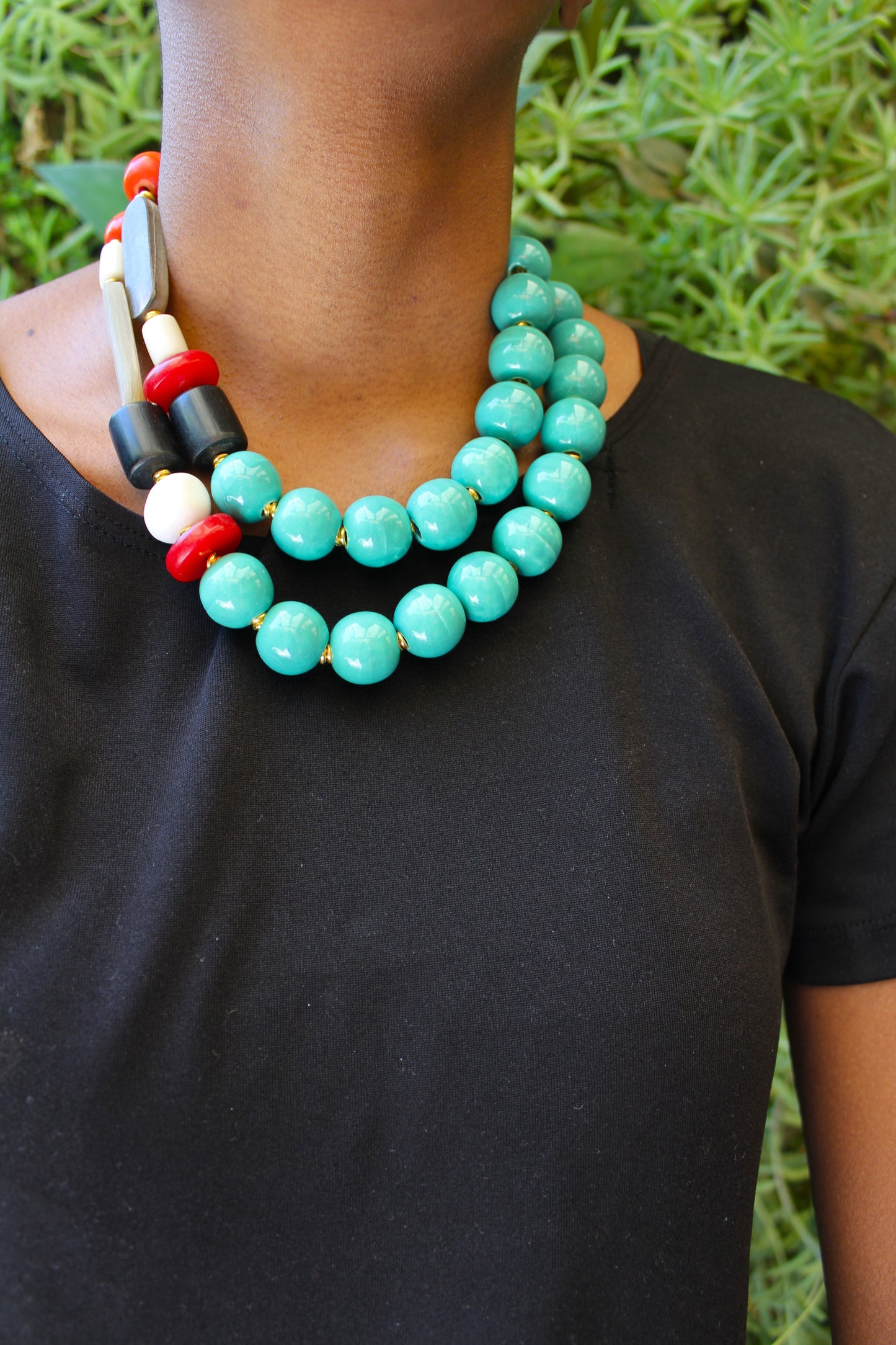 Crafted with a mix of horn beads, round beads, brass spacers and brass chain.