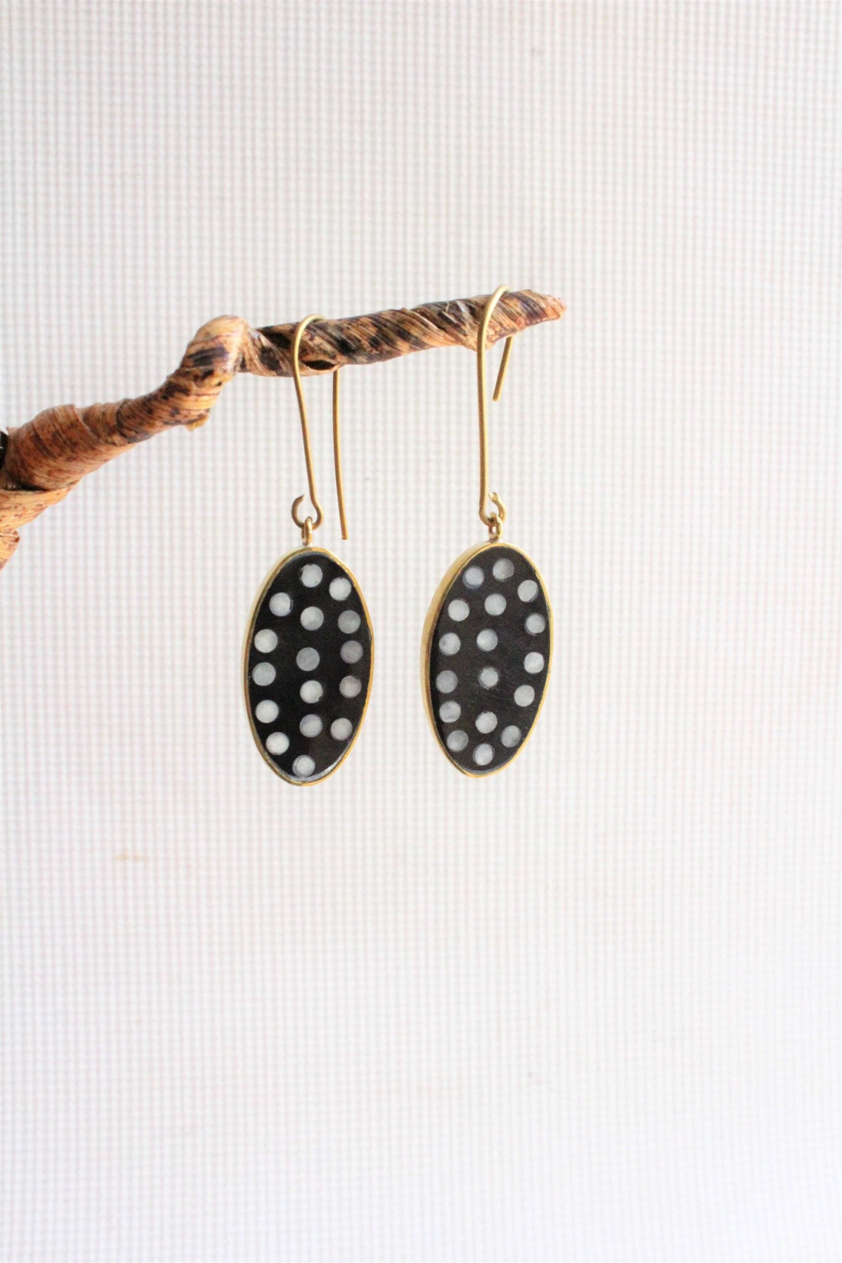 Crafted with bone beads and with brass pendants. Lightweight to wear!