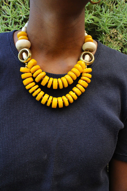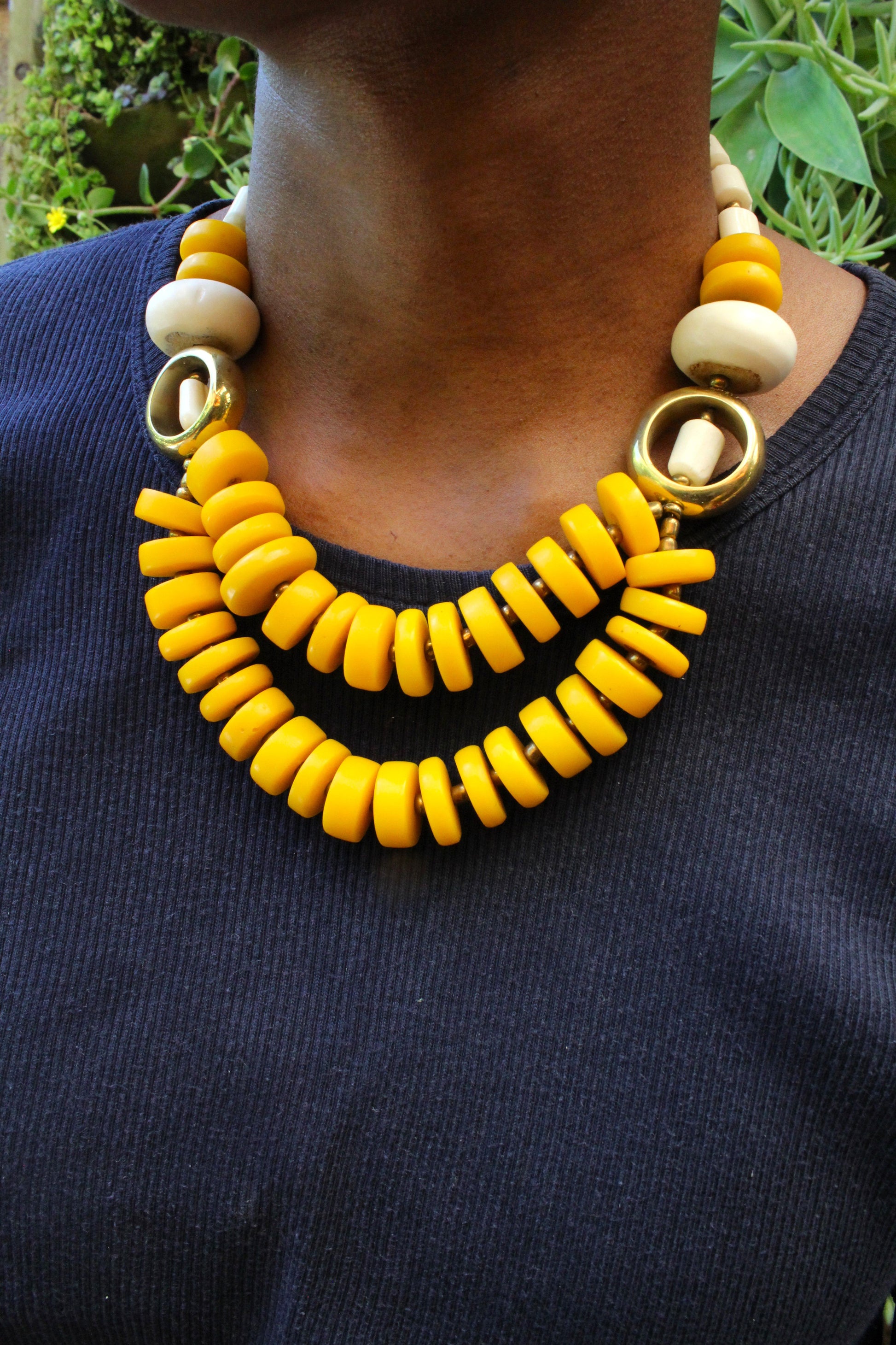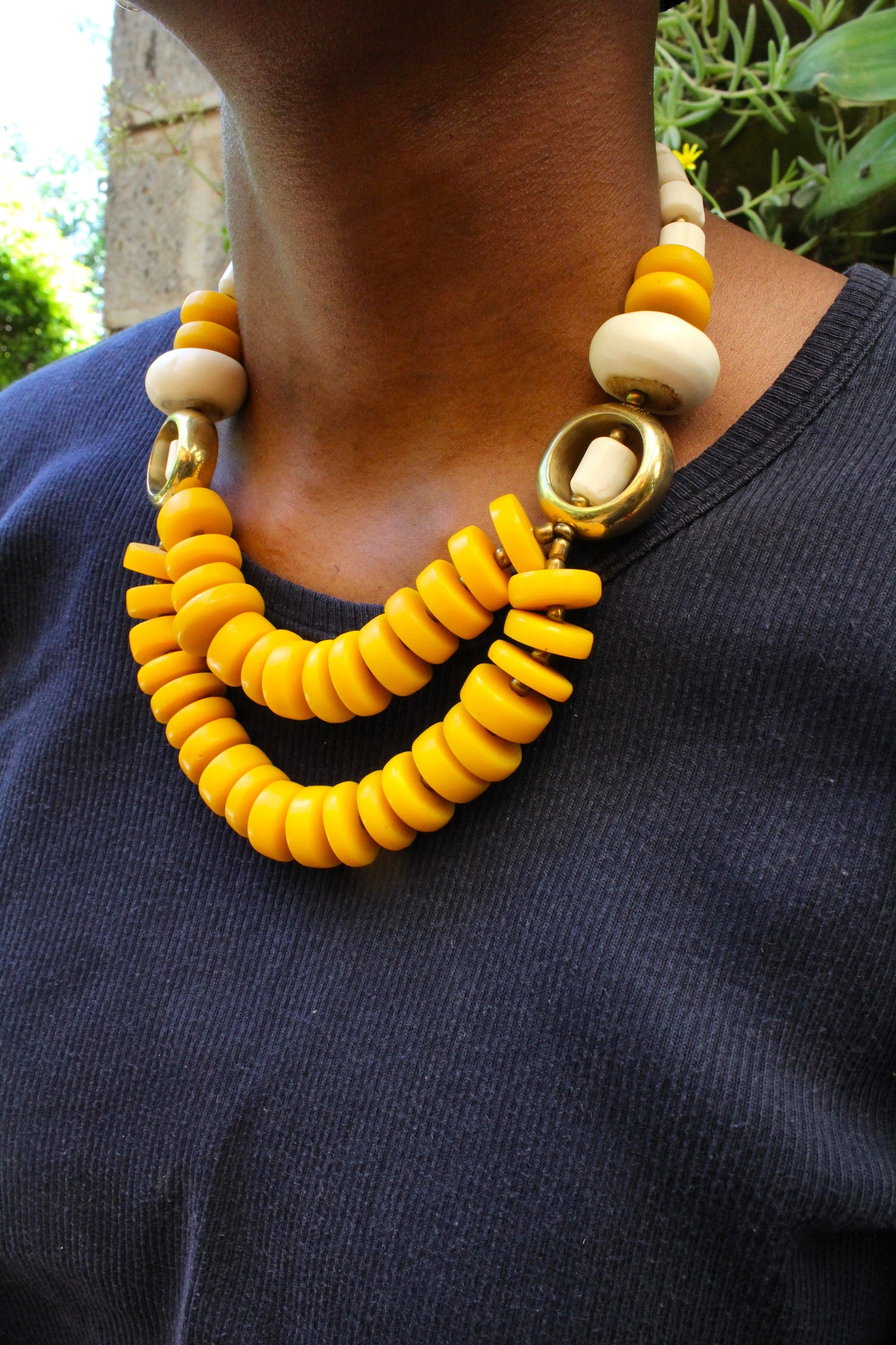 This Beautiful necklace is crafted with african beads and brass. Finished with a quality brass clasp and chain.